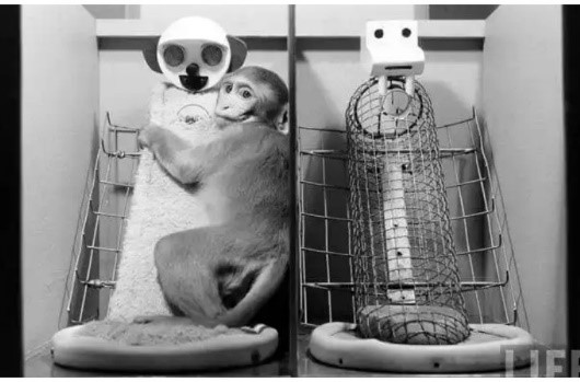 Lo primero que se hizo evidente fue el hecho de que los monos solo pasaban el tiempo necesario para comer con la madre de alambre y todo el resto del tiempo lo pasaban con la de felpa. Parecía que los monos satisfacían una necesidad de cuidado, afecto y protección con la madre de felpa.